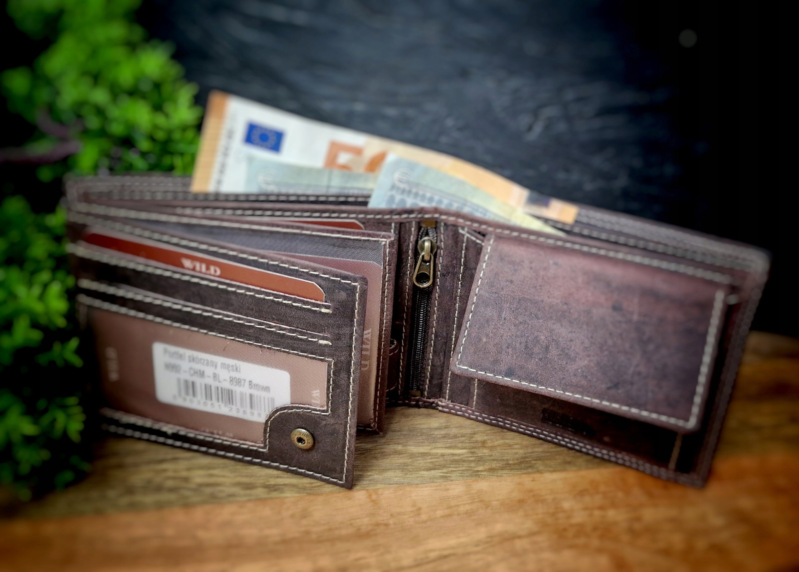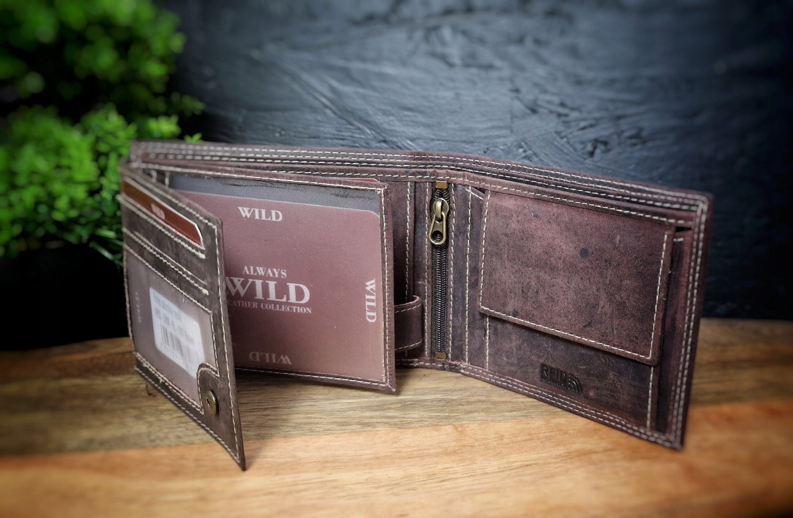 - Vyriška natūralios odos piniginė ALWAYS WILD (rudos spalvos): Nepakeičiamas aksesuaras kiekvienam vyrui. Turi daug skyrelių banknotams (2), monetoms (1 užsegama spaudė, 1 užsegama užtrauktuku), kortelėms (10) ir dokumentams. Integruota RFID BLOKAVIMO SISTEMA užtikrina maksimalų saugumą.