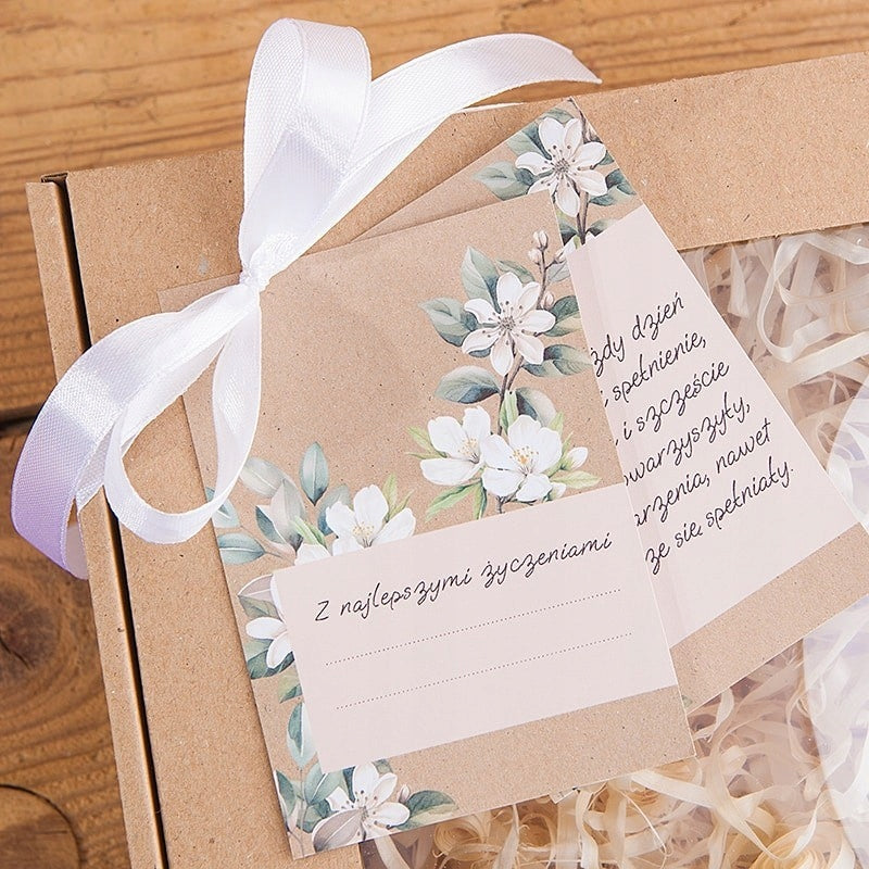 - Atvirukas su palinkėjimais: pridedamas atvirukas su gražiais linkėjimais suteikia dovanai asmeniškumo.