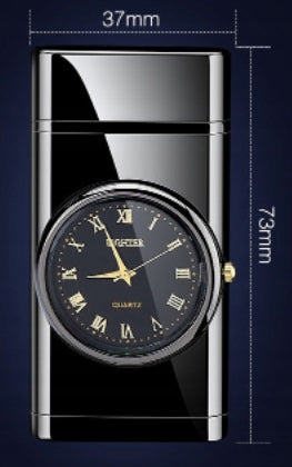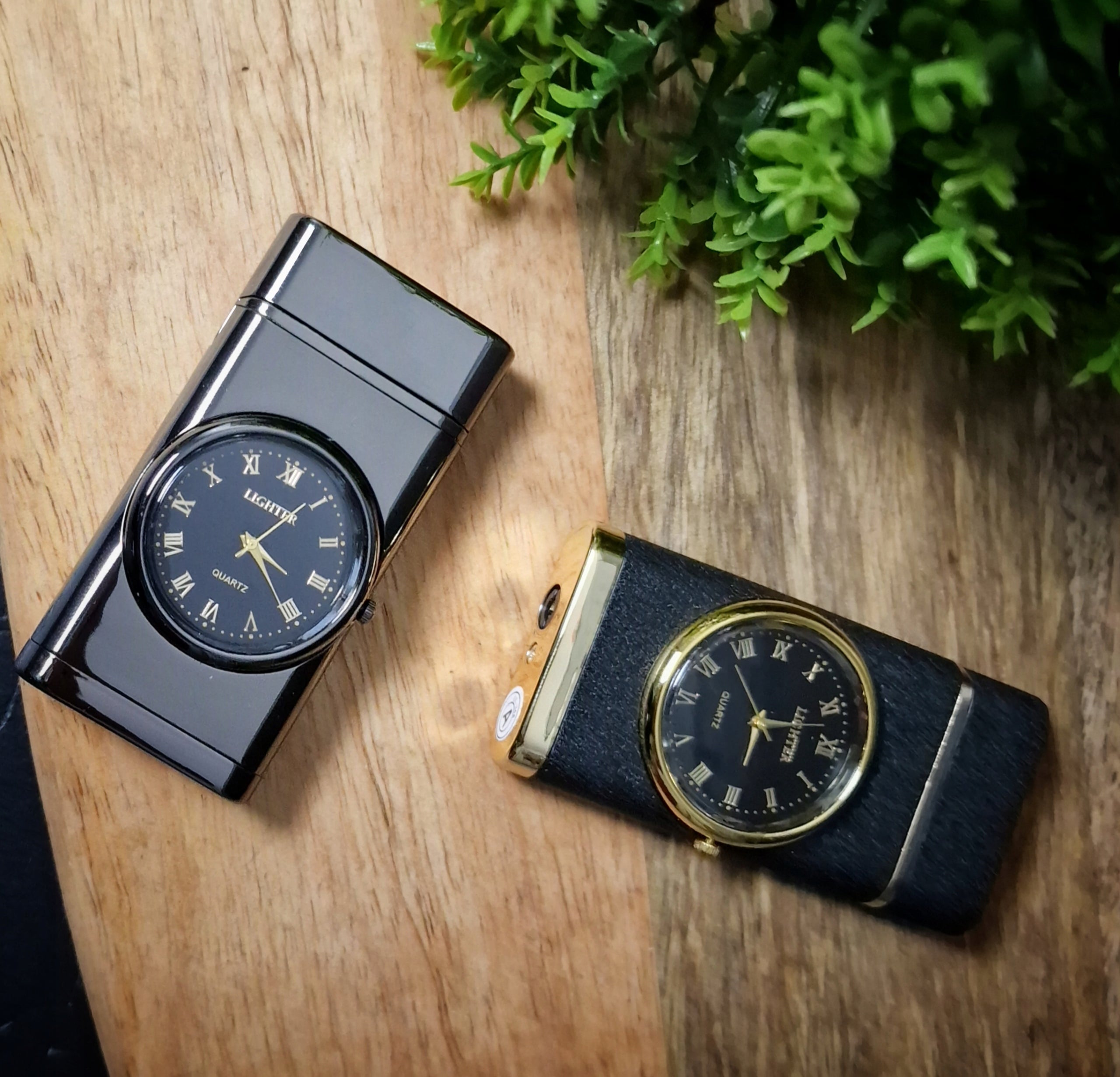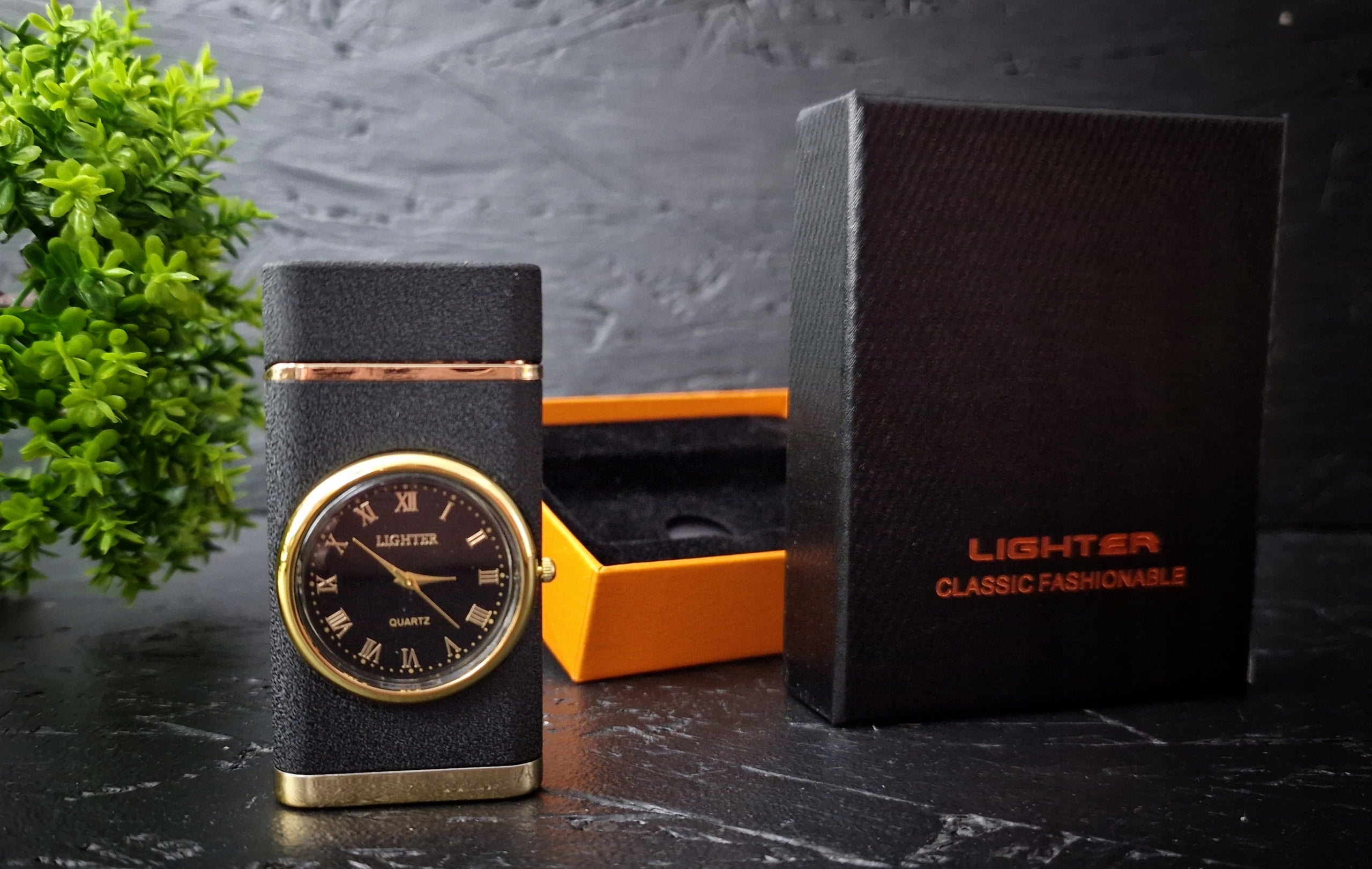 • Dujinis žiebtuvėlis su laikrodžio ciferblatu: Unikalus ir stilingas dizainas, atsparus įvairioms oro sąlygoms – lietui, vėjui, sniegui. Elegantiškas žiebtuvėlis turi analogišką, automatiškai šviečiantį laikrodžio ciferblatą, kuris įsijungia kiekvieno panaudojimo metu. Jį galima pakartotinai pildyti dujomis. Galimi variantai: juodas matinis su aukso detalėmis arba juodas blizgus (veidrodinis), siunčiamas atsitiktine tvarka.