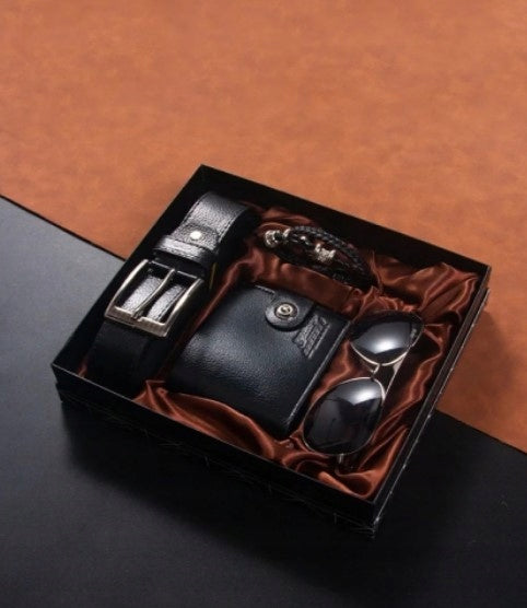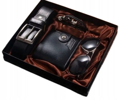 Vyriškas dovanų rinkinys su pinigine, diržu, akiniais ir apyranke