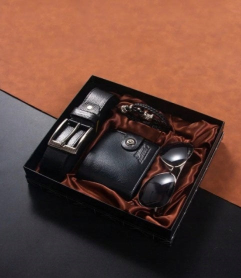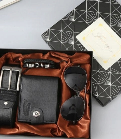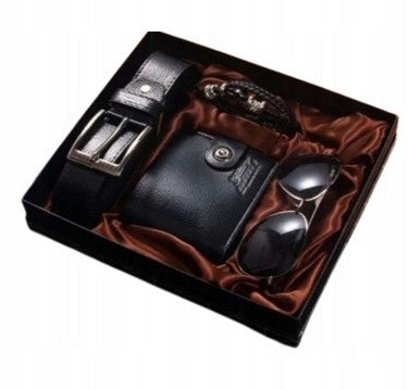 Vyriškas rinkinys vyrui – piniginė, diržas, akiniai, apyrankė, dėžutė