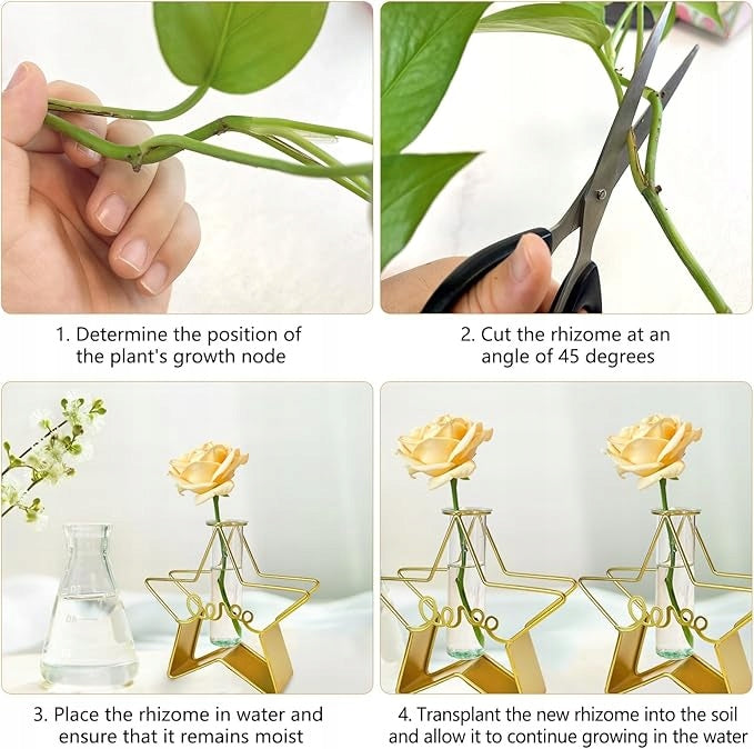 Vaza GLAMOUR Žvaigždė pasižymi išskirtiniu dizainu, kurio pagrindą sudaro tuščiavidurio metalo stovas, suteikiantis jai lengvumo ir modernumo. Stovas padengtas specialia apsauga nuo rūdžių, todėl vaza ilgai išlaikys nepriekaištingą išvaizdą net ir drėgnesnėse patalpose. Galite būti ramūs dėl jos priežiūros – paviršių galima lengvai valyti tiesiog po tekančiu vandeniu. Išimamas stiklinis vamzdelis leidžia itin patogiai keisti vandens lygį ir priežiūrėti vazą bei joje esančius augalus.