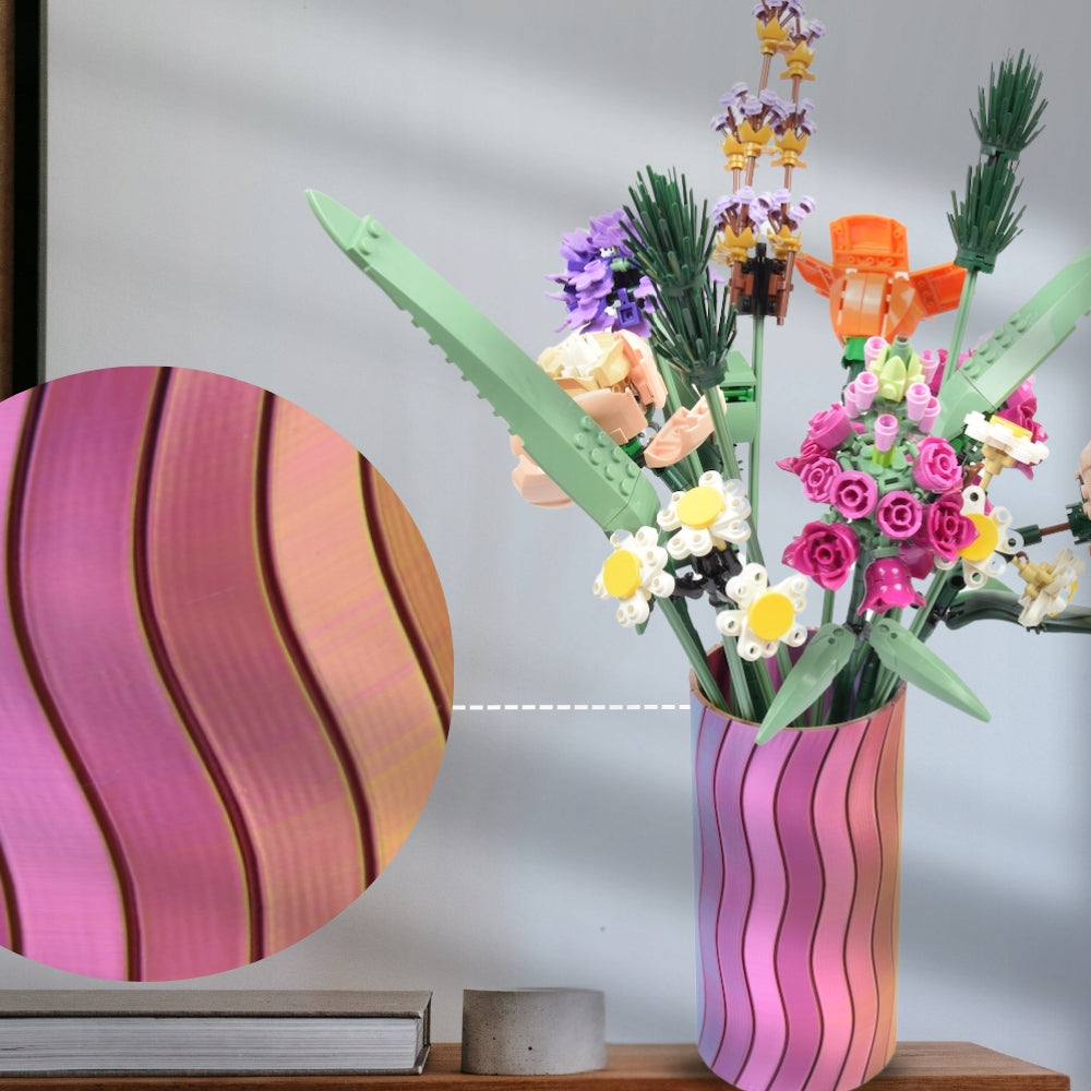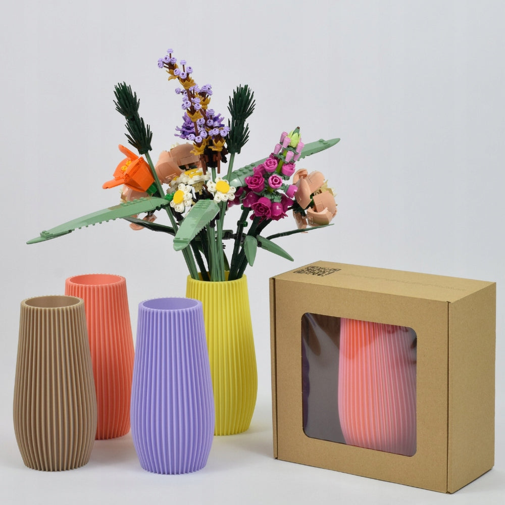 Vaza specialiai sukurtas ne tik tradiciniams dirbtiniams ar džiovintiems augalams, bet ir vis populiaresnėms LEGO gėlių kompozicijoms. Pamirškite nuobodžius vazonus – su ja jūsų mėgstamiausi dariniai iš LEGO kaladėlių, tokie kaip "Bukietas gėlių", "Lauko gėlių puokštė" ar "Rožių puokštė", atrodys dar įspūdingiau ir įgaus tikrą meno kūrinio statusą. Vazono dizainas subtiliai pabrėš kiekvieną detalę, sukuriant harmoniją tarp žaismingumo ir elegancijos.