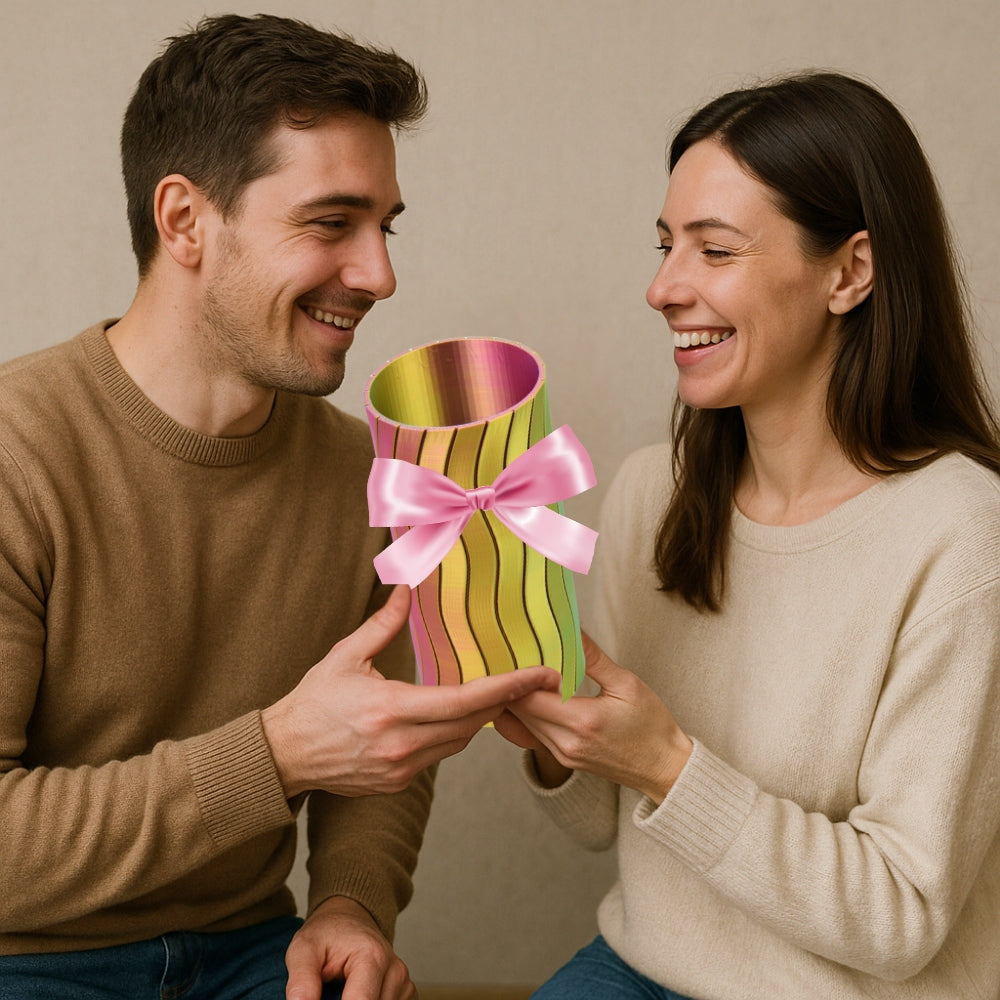 Ieškote originalaus interjero akcento, kuris ne tik papuoštų jūsų namus, bet ir išsiskirtų savo išskirtinumu? 3d vaza – tai ne tik vazonas, bet ir modernaus dizaino meno kūrinys, sukurtas atgaivinti jūsų namų erdvę. Ši 17 cm aukščio, pagaminta iš aukštos kokybės plastiko, 3D spausdinimo technologija sukurta vaza pasižymi unikalia banguota forma ir daugiaspalviu "tricolor" dizainu, kuris kiekvieną kampą padarys išskirtinį. Ji puikiai tiks dirbtinėms arba sausoms kompozicijoms, o ypač stebuklingai atrodys su LEGO gėlėmis.