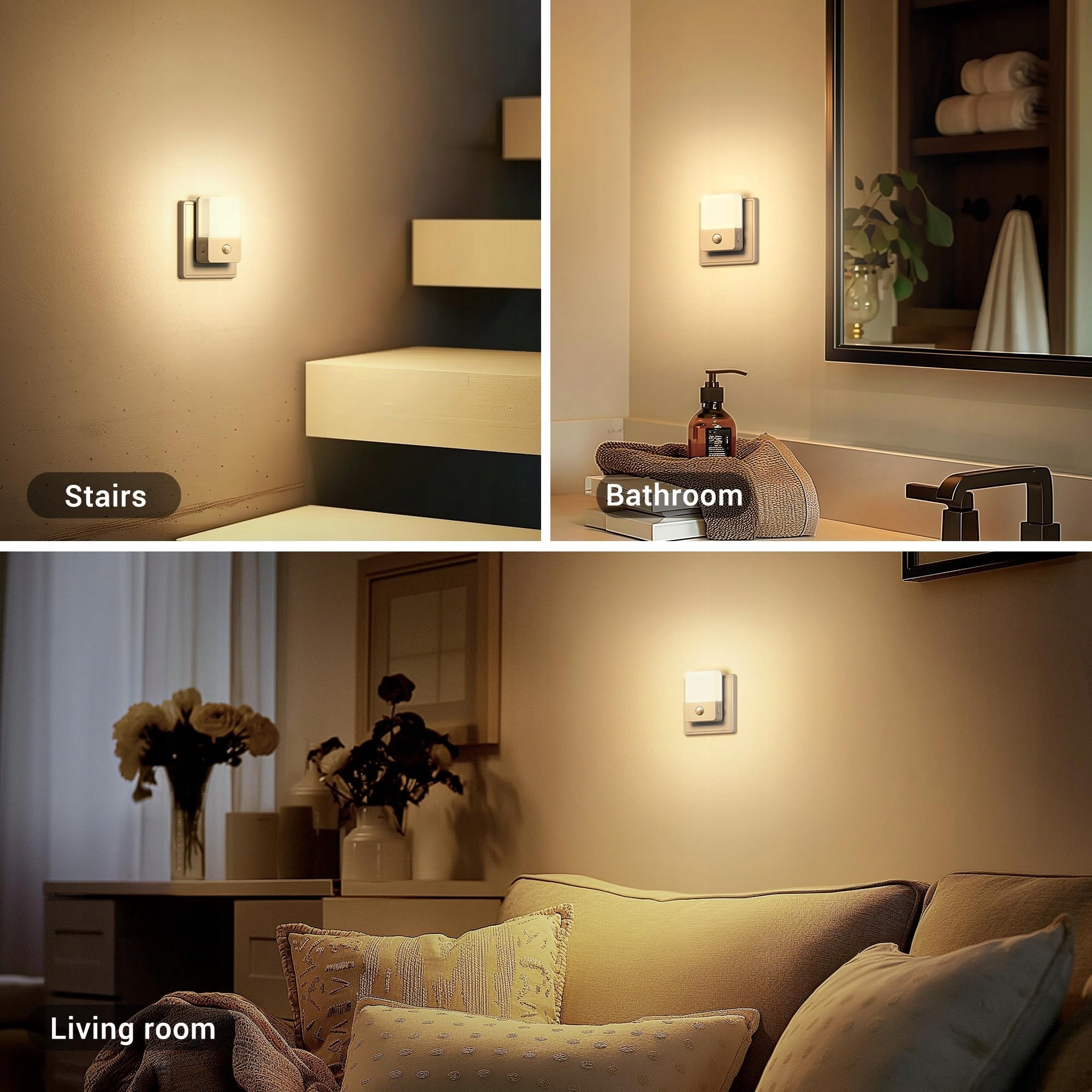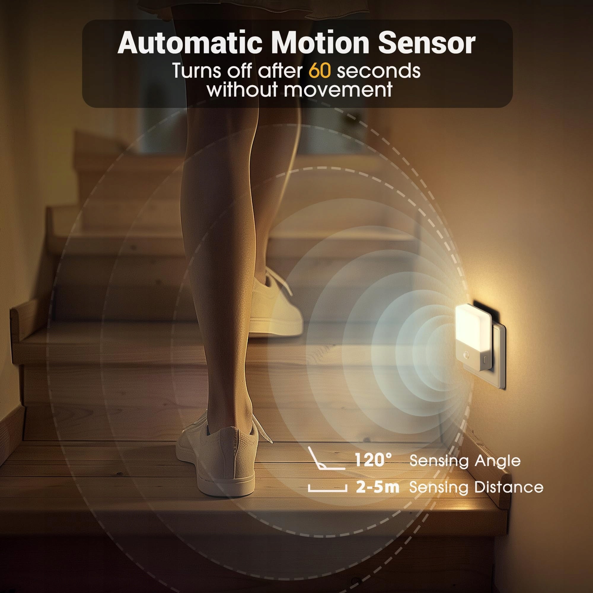 Ši naktinė lempa pasižymi išmaniu funkcionalumu, leidžiančiu jai automatiškai reaguoti į aplinką. Integruotas judesio daviklis aptinka judėjimą 2-5 metrų atstumu ir 120° kampu tamsoje, automatiškai įjungdamas šviesą. Po 60 sekundžių, kai judesys nebėra aptinkamas, lemputė automatiškai išsijungia, taip taupydama energiją. Taip pat yra du papildomi režimai: nuolatinis ON režimas, kai lempa šviečia pastoviai, ir OFF režimas, skirtas visiškam išjungimui. Tai užtikrina, kad šviesa bus įjungta tik tada, kai jos reikia, suteikiant patogumo ir taupant elektros energiją.