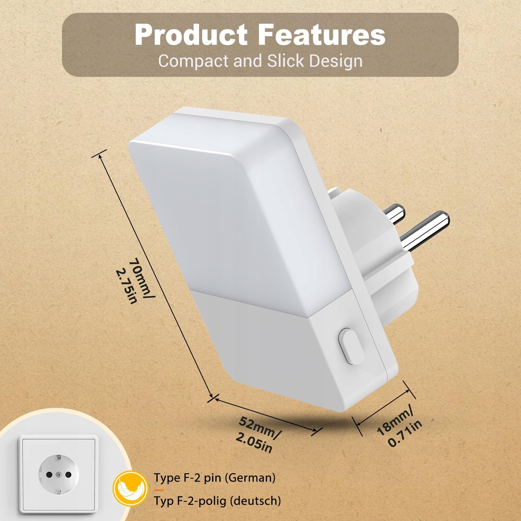 Su savo kompaktiška ir itin plona konstrukcija, ši lempa puikiai priglunda prie sienų, neužimdamas daug vietos. Jos dizainas ne tik praktiškas, bet ir estetiškas, lengvai derantis prie bet kokio interjero stiliaus. Šviesa nukreipta į priekį, todėl ji tarnauja tiek kaip funkcinis apšvietimas, tiek kaip dekoratyvinis elementas, sustiprinantis jaukumo jausmą. Labai lengva naudoti – tiesiog įjunkite į elektros lizdą ir ji paruošta veikti. Idealiai tinka vaikų kambariams, miegamiesiems, svetainėms, virtuvėms, laiptinėms, koridoriams ar vonios kambariams – visur, kur reikia papildomos šviesos tamsoje.