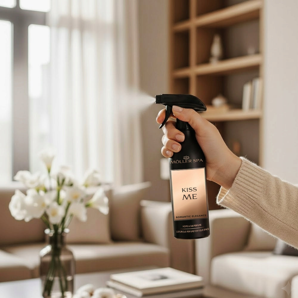 Moller SPA "Kiss Me" interjero kvepalai pasižymi išskirtiniu universalumu. Jie idealiai tinka atnaujinti bet kurios patalpos orą – nuo svetainės, miegamojo, vonios kambario iki biuro ar automobilio salono. Taip pat galite drąsiai purkšti ant tekstilės gaminių: užuolaidų, patalynės, užvalkalų, kilimų ar minkštų baldų, suteikdami jiems nuostabų aromatą. Nuo šiol jūsų spintos ir drabužiai dvelks šviežumu. Rekomenduojama atlikti bandymą nepastebimoje audinio vietoje, kad būtų išvengta dėmių. Naudojimas paprastas: purkškite į orą arba maždaug 30 cm atstumu nuo audinio paviršiaus.
