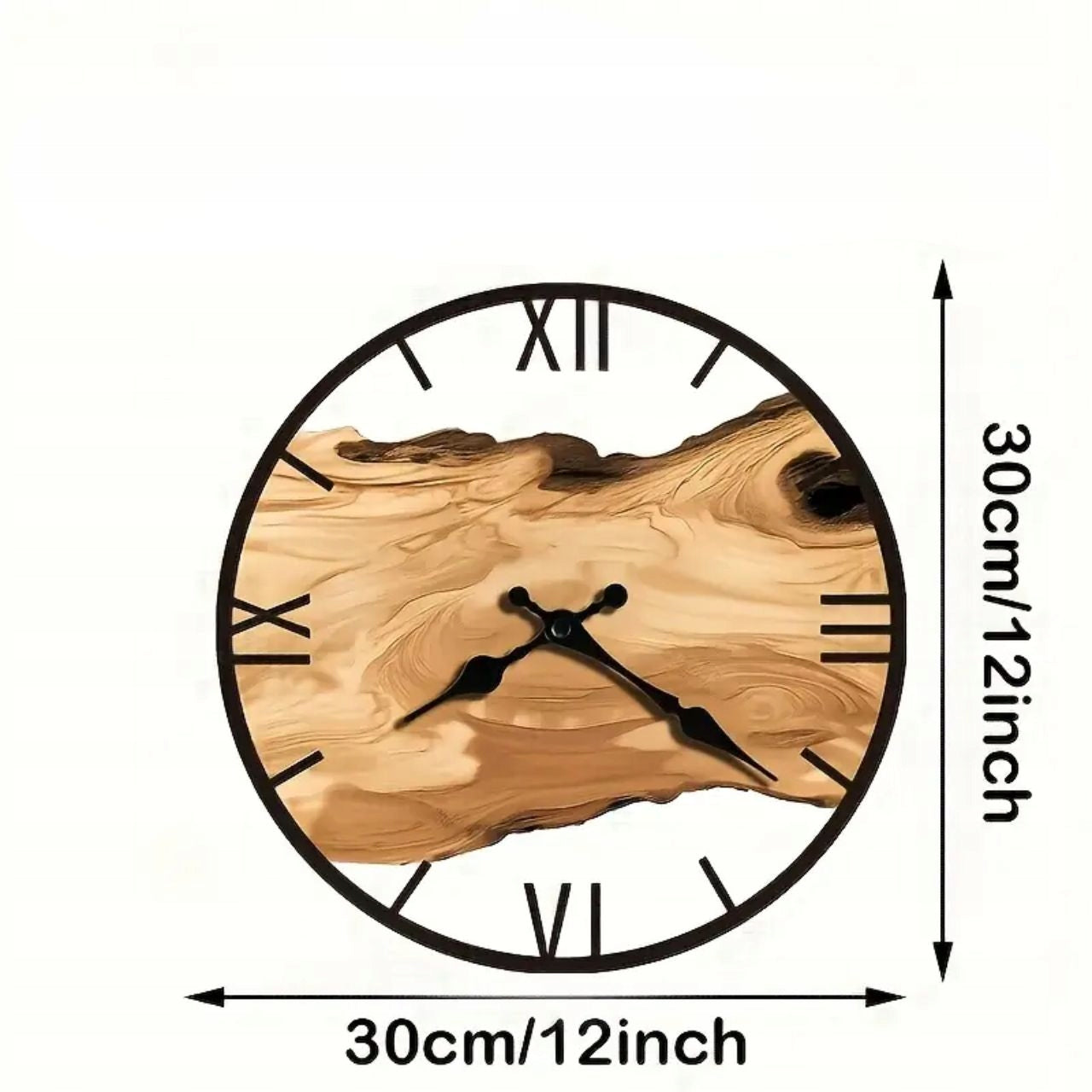 Šis apvalus sieninis laikrodis, kurio skersmuo siekia 30 cm, yra pagamintas iš aukštos kokybės akrilo, kuris pasižymi lengvumu ir atsparumu pažeidimams. Imituota medžio apdaila suteikia jam šiltumo ir elegancijos, derindama modernias medžiagas su klasikiniu retro stiliumi. Analoginė ciferblato rodyklė su romėniškais skaitmenimis suteikia laikrodžiui rafinuotumo ir užtikrina lengvą laiko skaitimą. Laikrodis turi CE sertifikatą, garantuojantį atitiktį Europos Sąjungos saugos standartams.