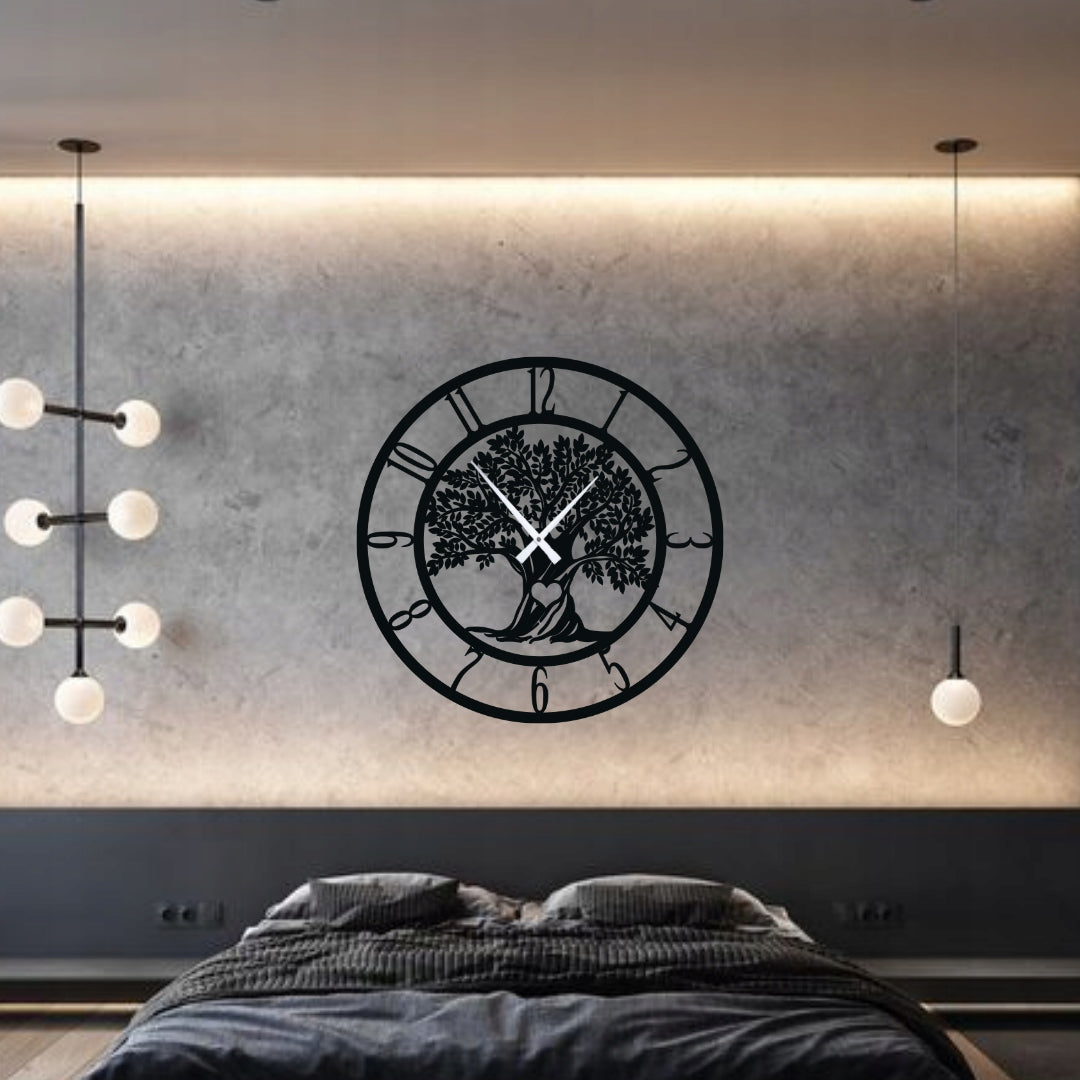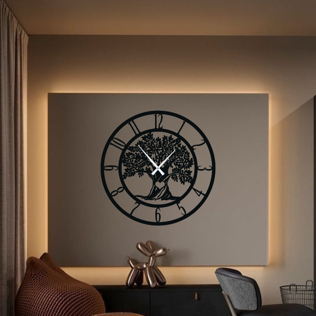 Šis laikrodis išsiskiria savo unikaliu ažūriniu dizainu su 3D efektu, imituojančiu medžio motyvą. Preciziškai lazeriu išpjauti raštai sukuria gilumo ir subtilumo iliuziją, suteikdami laikrodžiui gyvybės. Šis ažūrinis dizainas leidžia sienoms šiek tiek matytis pro laikrodį, sukuriant lengvumo ir erdvinio pojūčio įspūdį. Jo apytikslis 50 cm skersmuo yra idealus dydis, kad laikrodis būtų pastebimas, bet neužgožtų aplinkos. Tai puikus pasirinkimas tiems, kurie vertina originalumą ir nori pridėti savo interjerui išskirtinumo ir šilumos. Tai ne tik laiko matuoklis, bet ir meno kūrinys, kuris atspindi gamtos grožį ir šiuolaikinį dizainą.