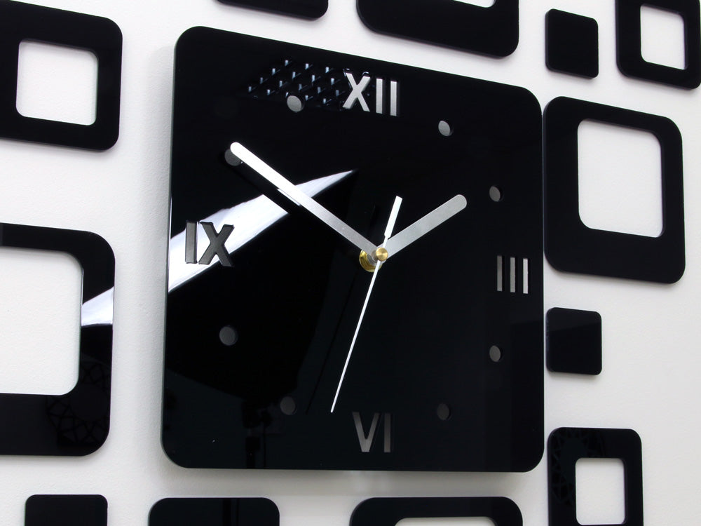 Sieninis laikrodis ROME juodas - 60cm, klijuojamas - DIY - svetainei - dovanai
