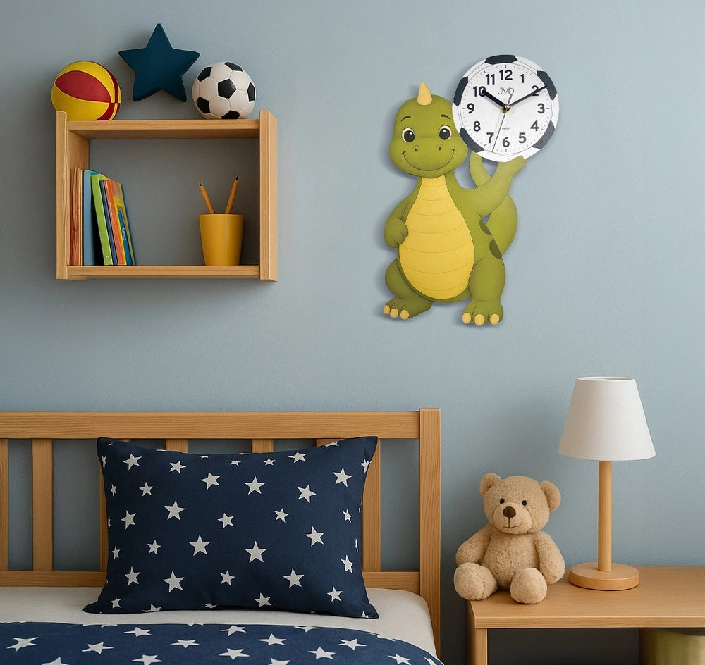 Pradžiuginkite savo mažylį su spalvingu ir žaismingu sieniniu laikrodžiu. Jis pagamintas iš natūralaus medžio, puikiai tiks bet kokio vaiko kambario interjerui. Jo unikalus dinozauro dizainas ir didelis, aiškus ciferblatas su arabiškais skaitmenimis padės vaikui lengvai išmokti atpažinti laiką. Tai ne tik praktiškas aksesuaras, bet ir nuotaikinga namų puošmena, kuri kasdien džiugins jūsų šeimą.