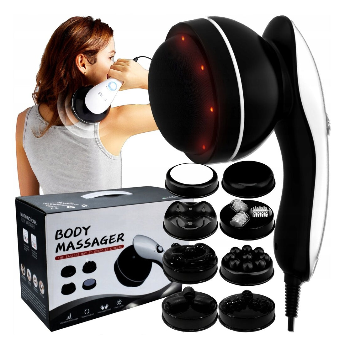 Atsisveikinkite su celiulitu ir nepatogumu! 9in1 kūno masažuoklis, sukurtas padėti Jums pasiekti lieknesnę figūrą ir stangresnę odą tiesiai Jūsų namuose. Įkvėptas profesionalių masažo technikų ir papildytas infraraudonųjų spindulių terapija, šis prietaisas suteikia gilų atsipalaidavimą, gerina kraujotaką ir limfos tekėjimą, o tai yra svarbiausia kovojant su celiulitu ir skatinant lieknėjimą. Tai Jūsų asmeninis grožio ir sveikatingumo pagalbininkas.