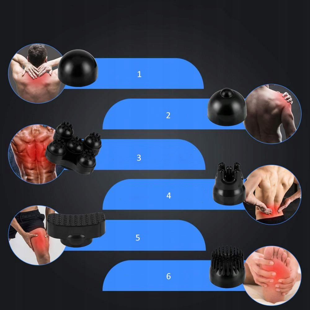 Šis masažuoklis komplektuojamas su septyniais skirtingais antgaliais, kurie leidžia pritaikyti masažą įvairioms kūno dalims ir specifiniams poreikiams. Kiekvienas antgalis atlieka unikalią funkciją: nuo gilaus taškinio masažo, skirtumo atpalaiduoti įtemptus taškus, iki plačių plotų stimuliacijos ir net anticeliulitinio poveikio. Plokščias antgalis puikiai tiks kojų ir rankų raumenims atpalaiduoti, sumažinti patinimus ir pagerinti kraujotaką. Specialus akupresūros antgalis padės atpalaiduoti pėdas ir delnus, suteikiant gilų relaksacijos jausmą. Dėl šių priedų, galite mėgautis profesionalaus lygio masažu tiesiai namuose.