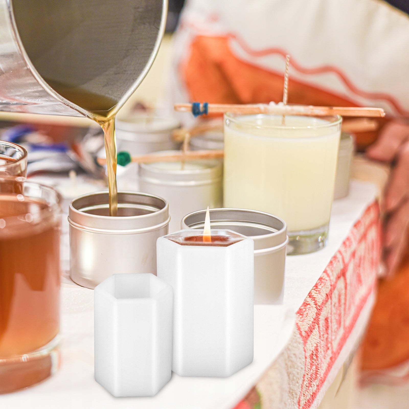 - Aukštos kokybės silikoninės formos užtikrina lengvą ir švarų žvakių išėmimą.