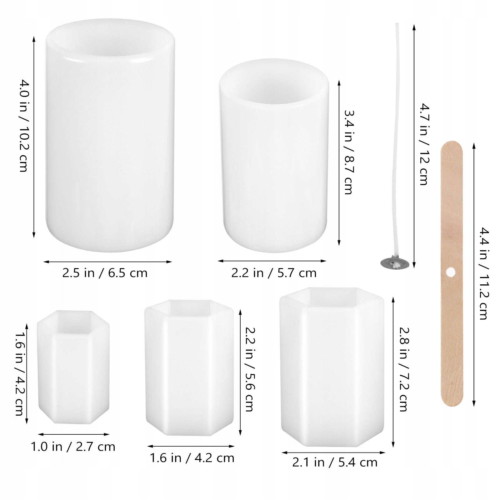 Šis rinkinys yra puikus pasirinkimas norintiems pradėti savo žvakių gamybos avantiūrą. Jis apima įvairių dydžių silikonines žvakių formas, kurios garantuoja lengvą žvakių išėmimą po sustingimo, išlaikant nepriekaištingą paviršių. Kartu su formomis gausite kokybiškus, stabiliai degančius dagčius ir specialius laikiklius, kurie užtikrina, kad dagtis liktų tiesi ir tinkamoje pozicijoje viso gamybos proceso metu. Tai padeda išvengti netolygios liepsnos ir užtikrina saugų žvakės degimą. Formų dydžiai: 10.2x6.5cm; 8.7x5.7cm; 4.2x2.7cm; 5.6x4.2cm; 7.2x5.4cm.