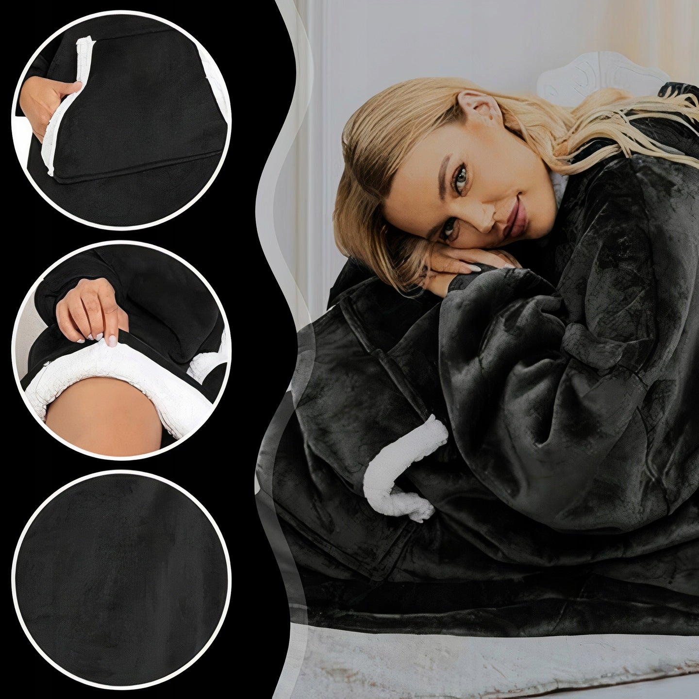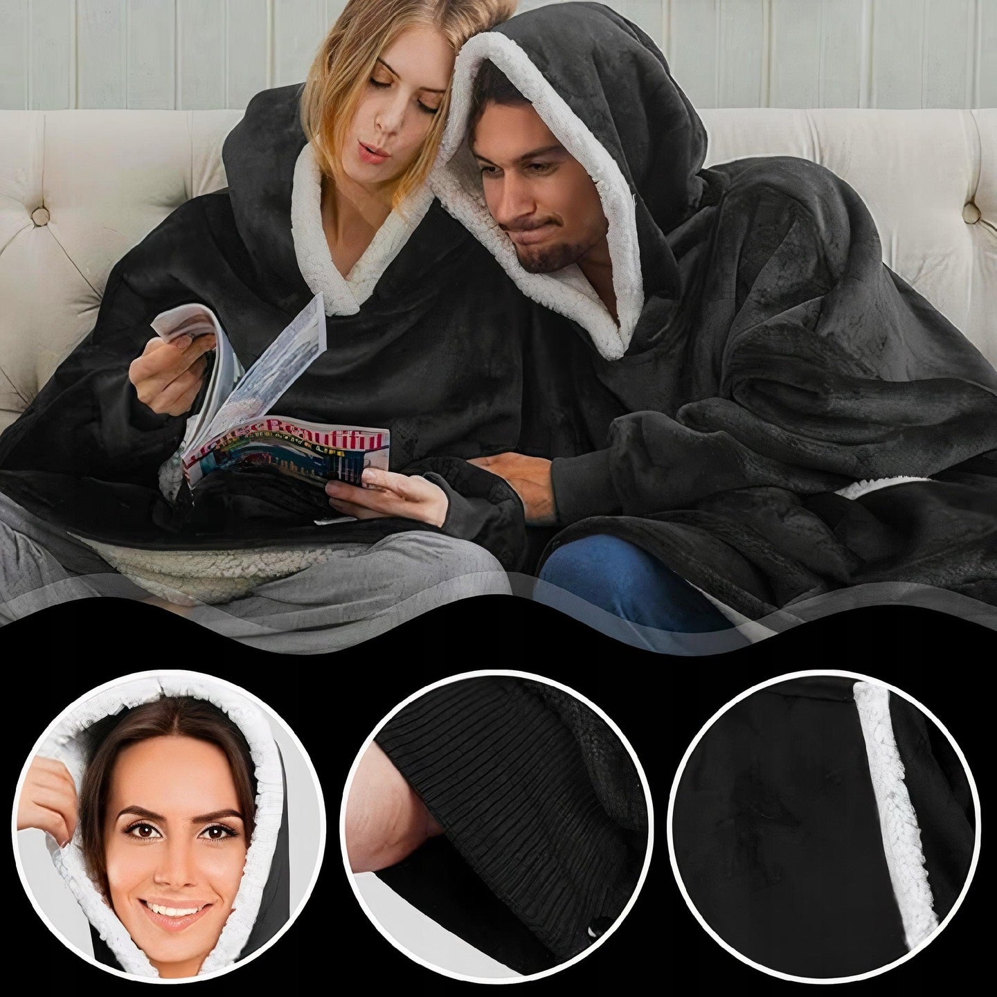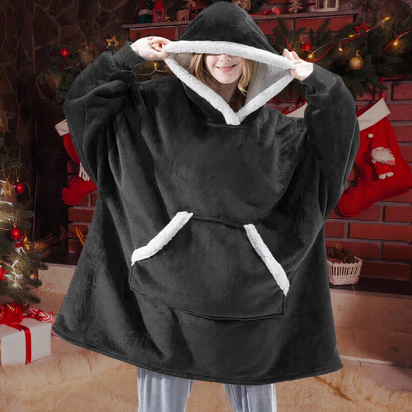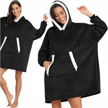 Tai idealus pasiūlymas tiems, kurie vertina komfortą, stilių ir, svarbiausia, šilumą. Šis storas megztinis–antklodė yra puikus pasirinkimas vėsesnėmis dienomis, kai reikia kažko, kas užtikrintų komfortą ir išskirtinę išvaizdą. Medžiaga, iš kurios pagamintas megztinis, primena minkštą, šiltą, pliušinę antklodę. Ji suteikia malonų pojūtį odai ir puikiai apsaugo nuo šalčio. Megztinis turi didelę „kengūrinę“ kišenę, kurioje galite papildomai sušildyti rankas.