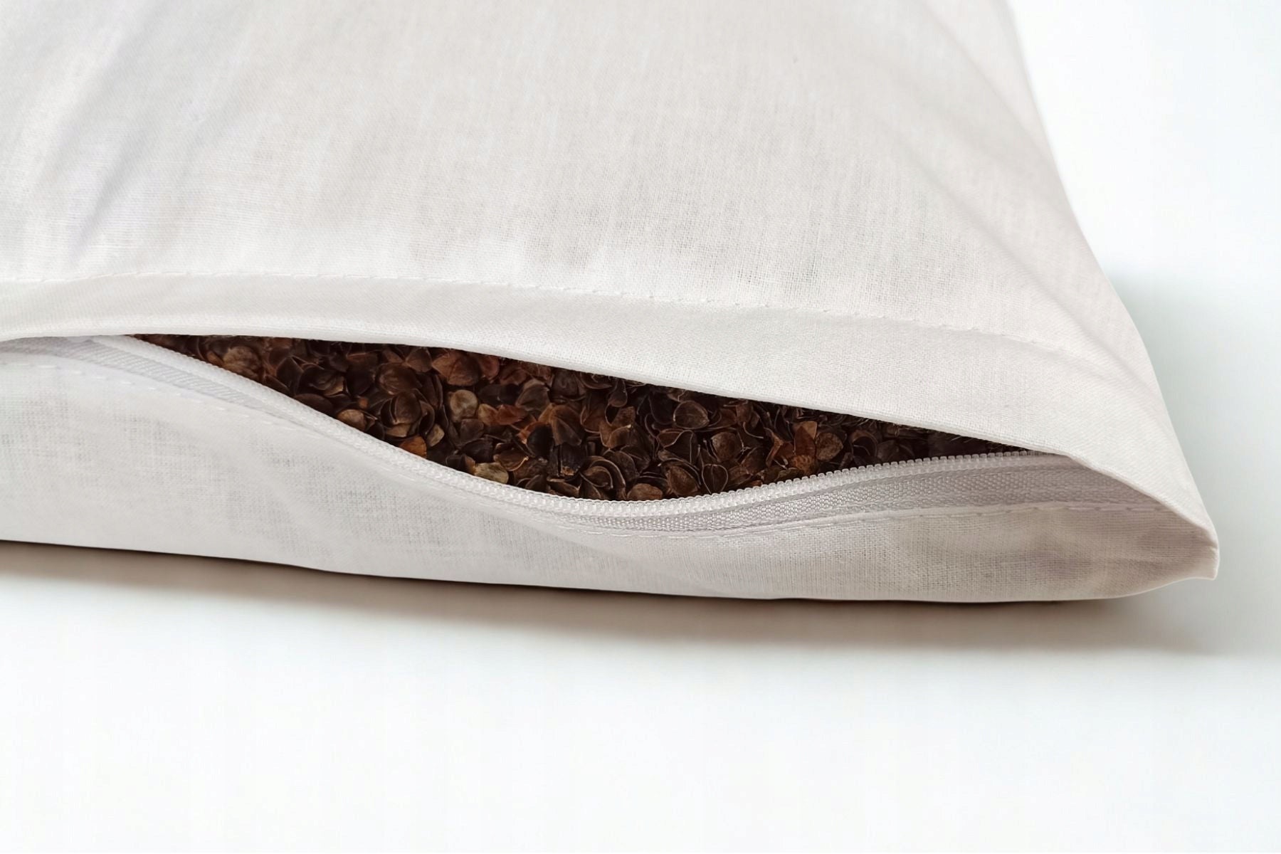 Natūralūs grikių lukštai yra viena geriausių medžiagų, naudojamų pagalvių gamyboje, siekiant užtikrinti optimalų poilsį. Jų unikalios savybės leidžia pagalvei prisitaikyti prie Jūsų galvos ir kaklo formos, suteikiant stabilų palaikymą stuburui. Tai ne tik malšina kaklo ir nugaros skausmus, bet ir skatina geresnę kraujotaką, gerina bendrą organizmo regeneraciją miego metu. Be to, grikių lukštai yra pralaidūs orui ir pasižymi antibakterinėmis savybėmis, apsaugodami nuo alergijų ir užtikrindami higienišką miego aplinką. Patogus 60 cm pločio užtrauktukas leidžia reguliuoti užpildo kiekį, pritaikant pagalvę pagal individualius poreikius.