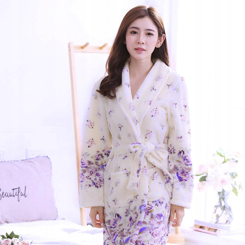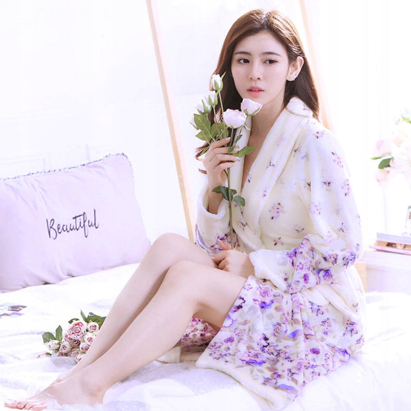 Moteriškas minkštas ir šiltas chalatas su gėlėtu raštu