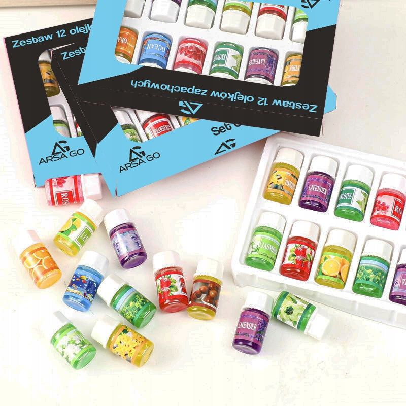 • Komplekte 12 skirtingų kvapų aliejų – puiki dovana arba pradžia aromatų pasauliui.