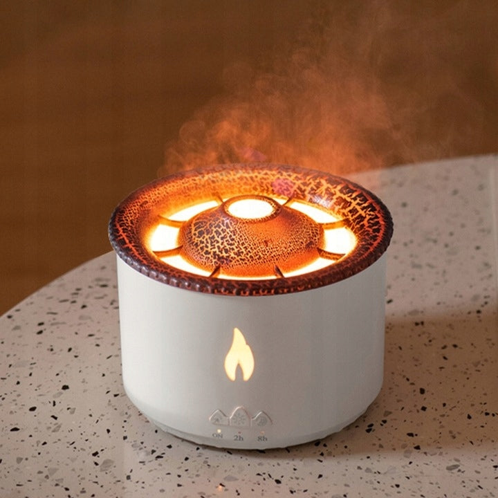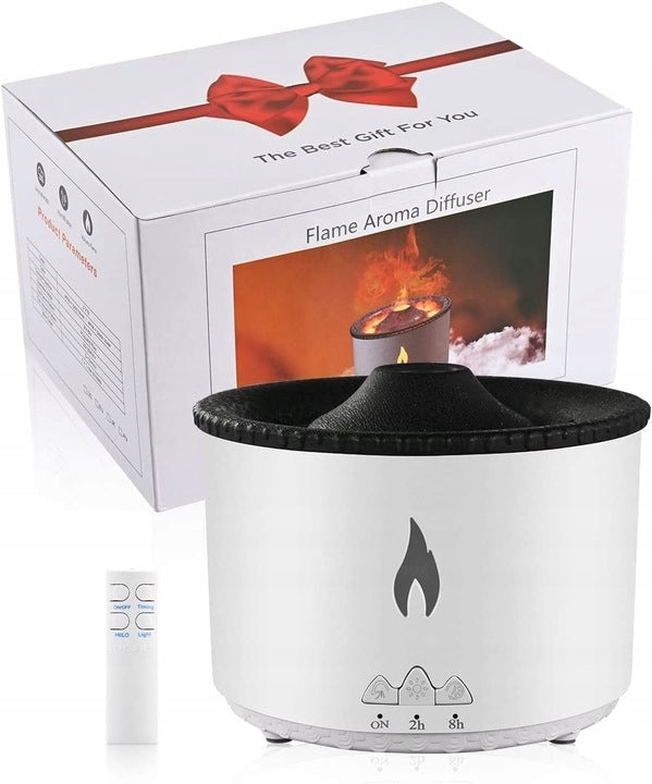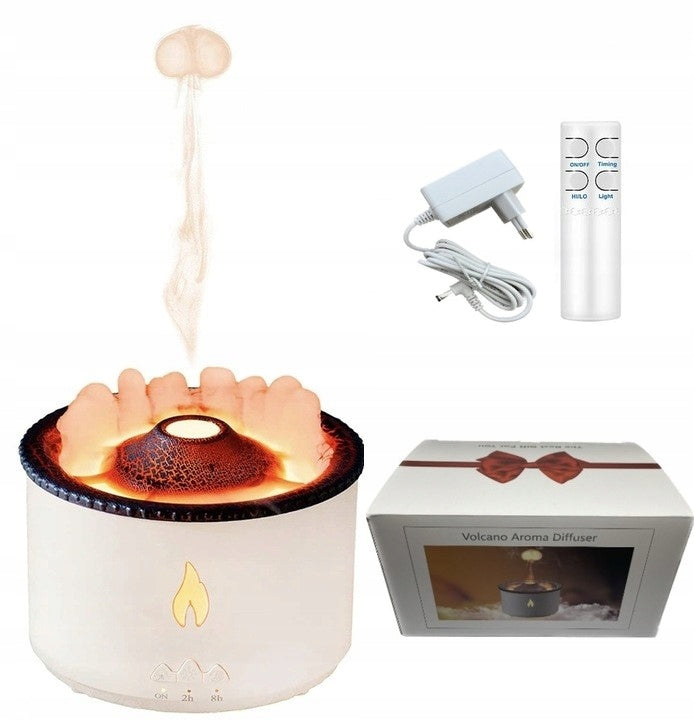 Šis unikalus difuzorius sukurtas siekiant maksimalaus patogumo ir malonumo. Jo pagrindinė funkcija – efektyvus oro drėkinimas, padedantis palaikyti optimalų drėgmės lygį, ypač šildymo sezonu ar sausame klimate. Integruota LED apšvietimo sistema leidžia pasirinkti vieną iš 7 spalvų, sukuriant ramų ar gyvybingą apšvietimą pagal jūsų nuotaiką. Prietaisas valdomas patogiu nuotolinio valdymo pulteliu, suteikiančiu visišką kontrolę: galite lengvai įjungti/išjungti prietaisą, keisti LED spalvas, nustatyti veikimo laiką ar pasirinkti vieną iš dviejų unikalių garų efekto režimų – „liepsnos“ arba „vulkano išsiveržimo“. Šie režimai ne tik vizualiai patrauklūs, bet ir skiriasi drėkinimo intensyvumu, leisdami pritaikyti prietaisą pagal patalpos dydį ir jūsų poreikius.