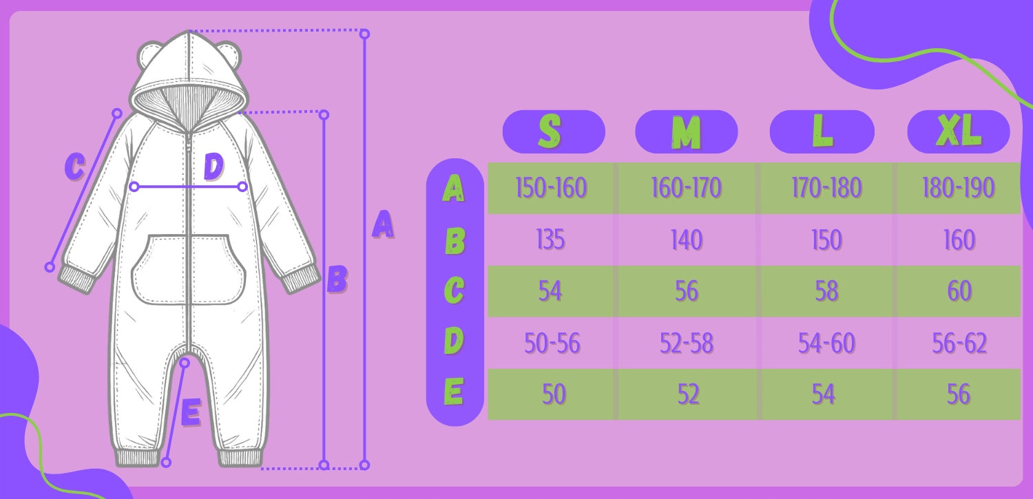 Tai ne tik šilta pižama vėsiems vakarams, bet ir puikus pasirinkimas teminiam vakarėliui! Dėl laisvo kirpimo ir elastingų rankogalių suteikiama visiška judėjimo laisvė ir tvarkinga išvaizda – tobula tiek poilsiui, tiek kasdienėms veikloms.