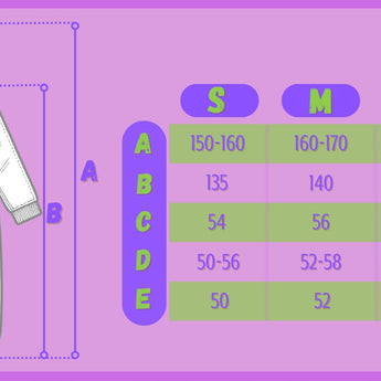 S dydis - ~160 cm. ūgio. M dydis - ~170 cm. ūgio.